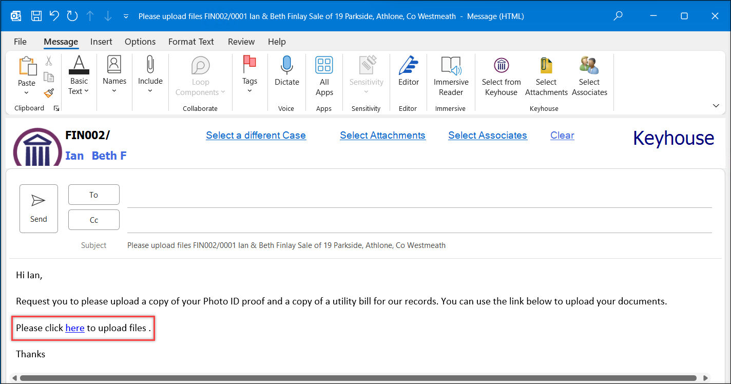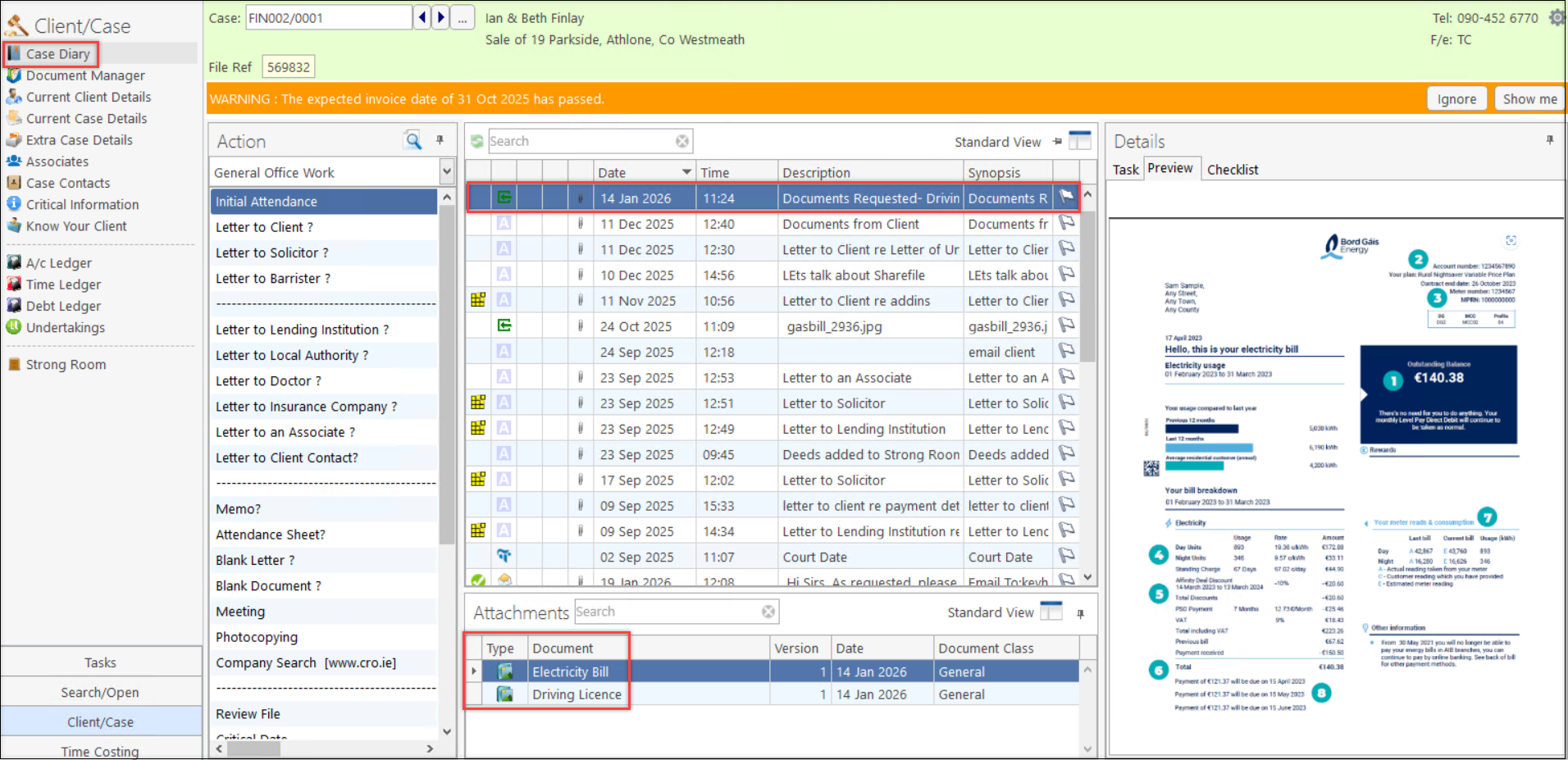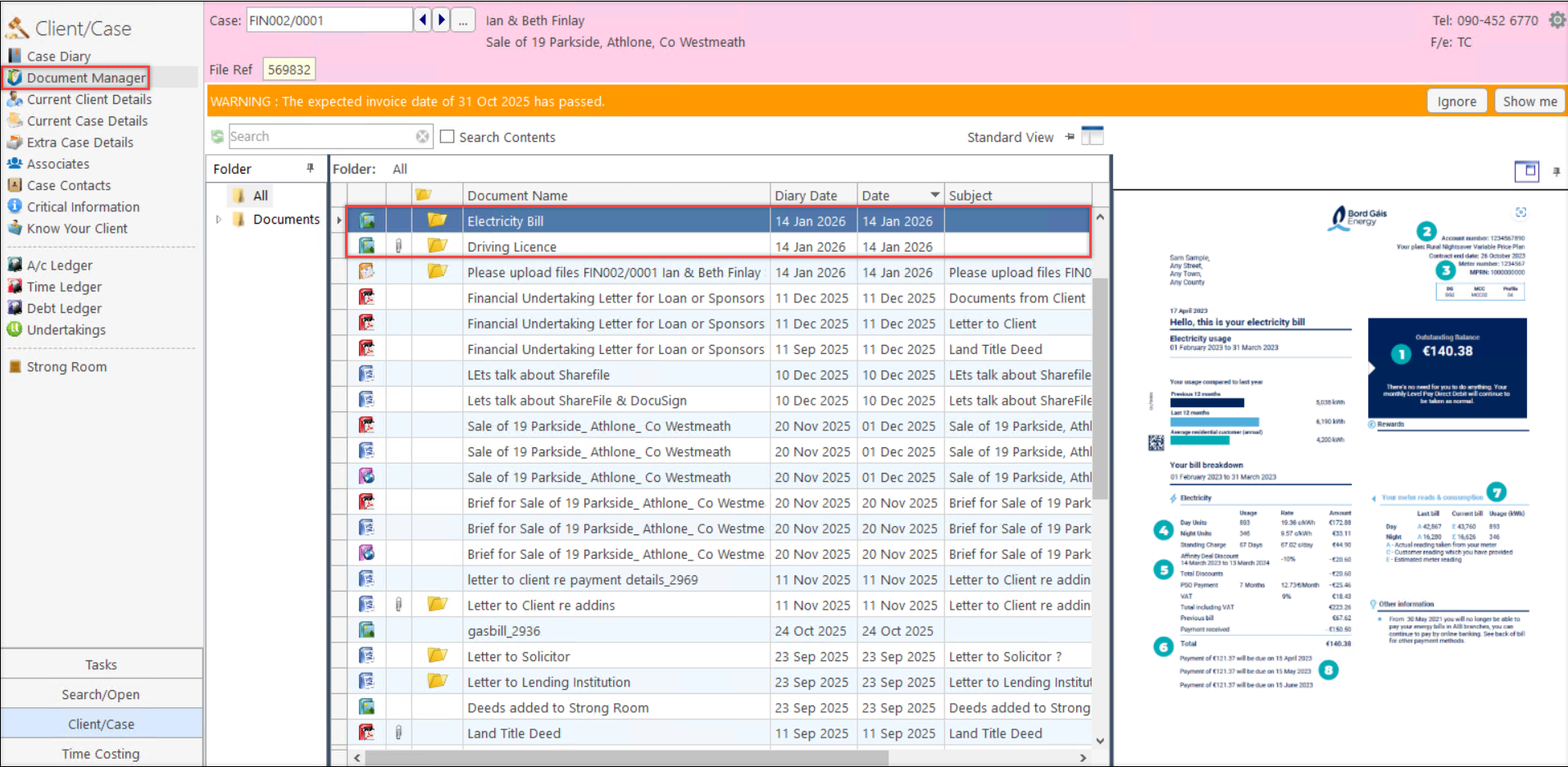 You can for example ask a client to take a photo of their Driving Licence and upload it to the link. It will then automatically upload to the file’s Document Manager.